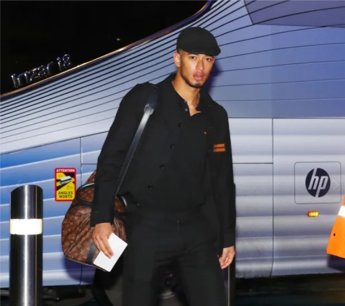 當(dāng)?shù)貢r間周二晚間,貝林厄姆隨皇馬全隊一起飛回馬德里,陪同英格蘭國腳一起登機的有他的母親和女友。貝林厄姆頭戴一頂黑色平頂帽,搭配黑色夾克和襯衫,以及一只售價超過2000英鎊的LV單肩包。