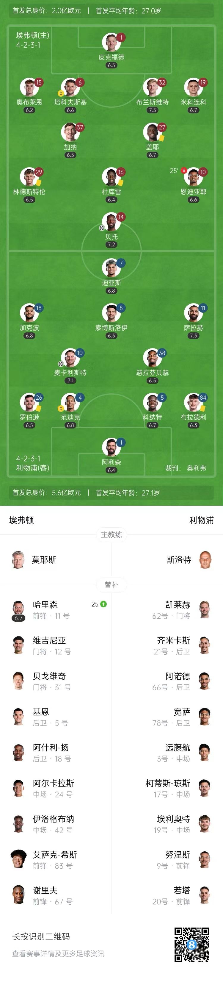 半場-利物浦暫1-1埃弗頓 麥卡利斯特頭球破門薩拉赫送助攻