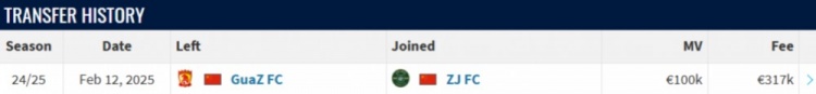 2月13日訊 根據(jù)德轉信息,原廣州隊門將霍深坪加盟浙江隊。