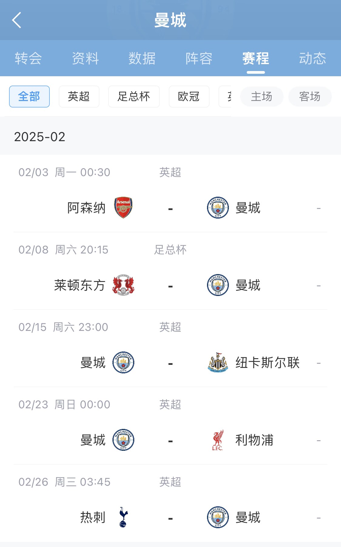 - 瑟瑟發(fā)抖!曼城2月將對(duì)槍手紐卡紅軍熱刺+2場(chǎng)歐冠附加賽對(duì)皇/仁