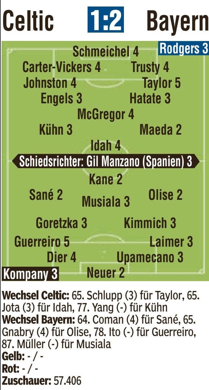 拜仁vs凱爾特人圖片報(bào)評(píng)分:凱恩、薩內(nèi)、奧利塞、諾伊爾2分最高