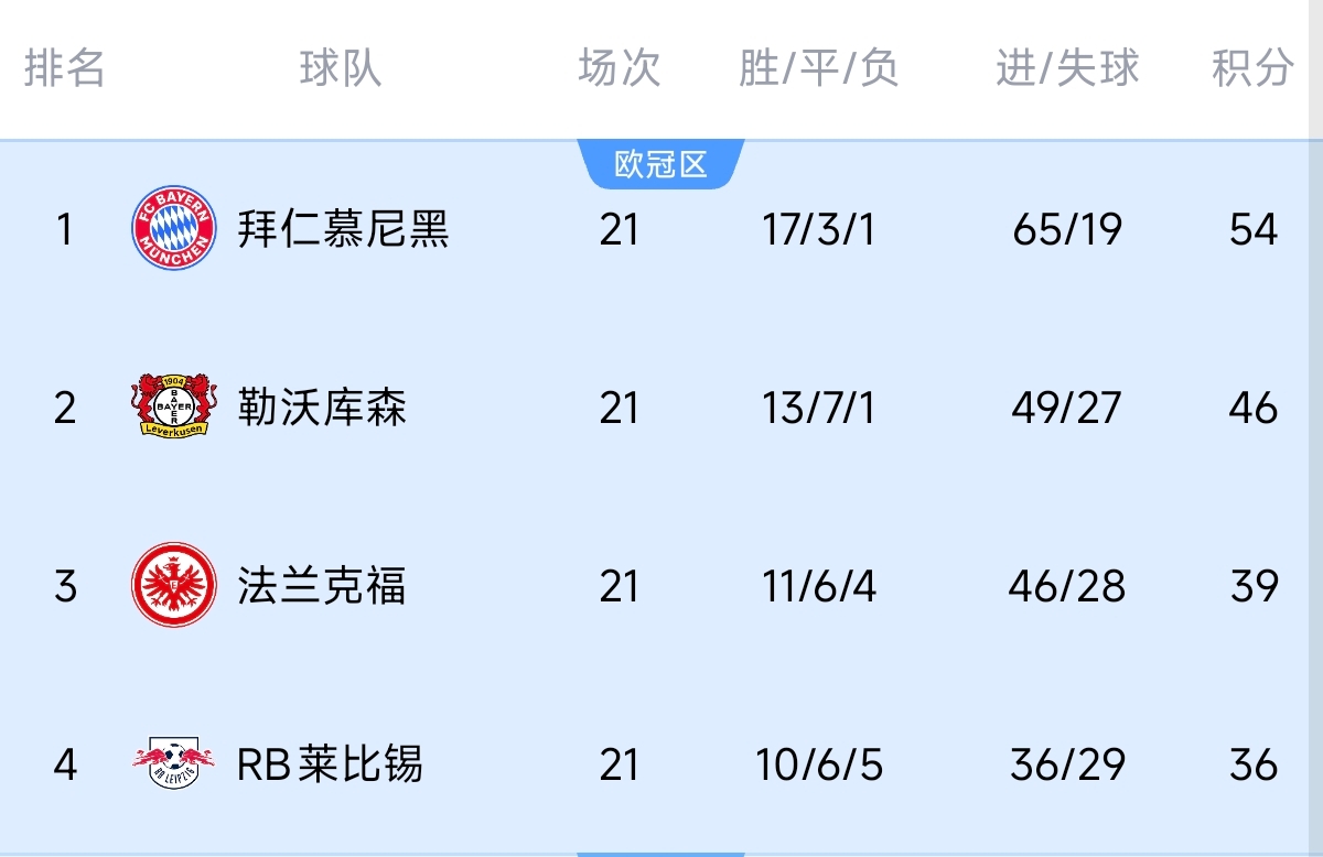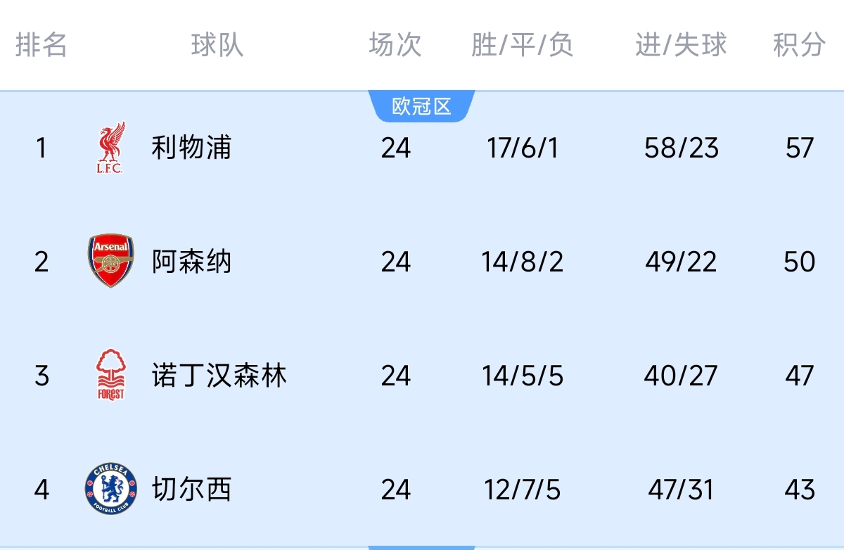 五大聯(lián)賽榜首球隊領跑優(yōu)勢: