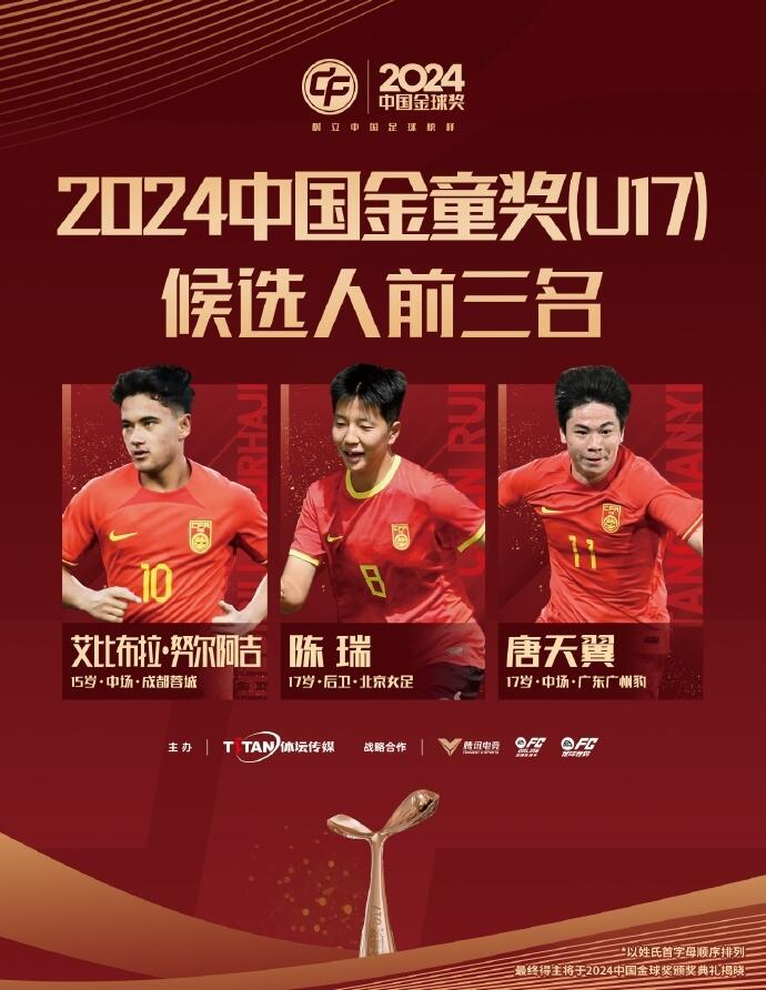 02月13日訊 2024中國金球獎頒獎儀式將于2月13日在杭州舉行,現(xiàn)場播放的金童獎(U17)三人候選宣傳片顯示,近期陷入出軌、賭球風(fēng)波的唐天翼被移除,魏祥鑫“遞補(bǔ)”。