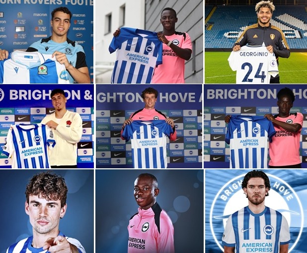 在124年的隊(duì)史中,布萊頓長(zhǎng)期徘徊于低級(jí)別聯(lián)賽,唯一的頂級(jí)聯(lián)賽經(jīng)歷(1979-1983)沒(méi)有任何亮點(diǎn)可言。2016/17賽季升入英超之后,海鷗軍團(tuán)在保級(jí)圈周圍掙扎了四個(gè)賽季,期間沒(méi)有高價(jià)出售球員的經(jīng)歷,賣出的身價(jià)唯一超過(guò)千萬(wàn)歐元的球員就是科諾凱特(1170萬(wàn)歐元)。以2021夏窗出售本-懷特(5850萬(wàn)歐元)為標(biāo)志,布萊頓成為頂級(jí)豪門供貨商,麥卡利斯特、凱塞多、比蘇馬、庫(kù)庫(kù)雷利亞、羅伯托-桑切斯、昂達(dá)夫和特羅薩德等人共計(jì)為東家創(chuàng)收近4億歐元。