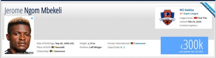 喀麥隆球員熱羅姆·恩戈姆·姆貝凱利(Jerome Ngom Mbekeli)轉(zhuǎn)會梅州客家。恩戈姆今年26歲,司職邊鋒,曾入選喀麥隆國家隊。此前在摩爾多瓦警長隊效力,為該隊出場了42次,打進6球。 ???