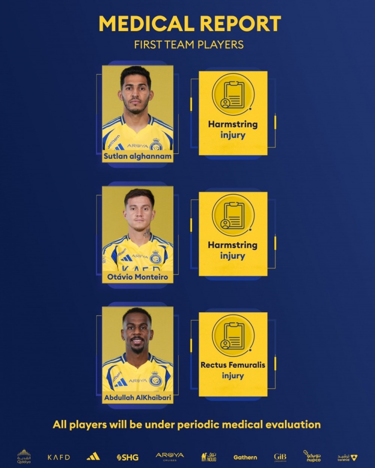 利雅得勝利官方表示,上述球員都將接受定期檢查。