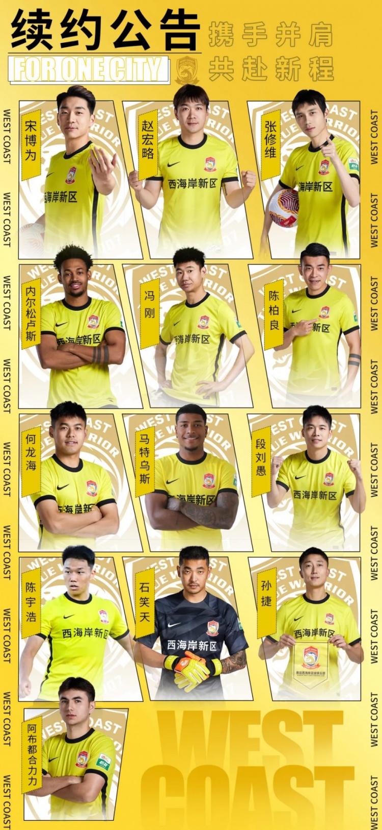 西海岸官方:與內(nèi)爾松盧斯、馬特烏斯、張修維等13名球員續(xù)約