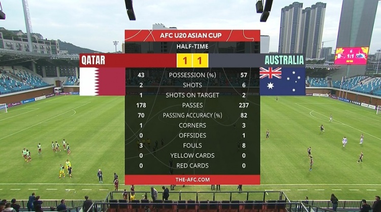 國(guó)青同組對(duì)手!半場(chǎng)-卡塔爾U20暫1-1澳大利亞U20