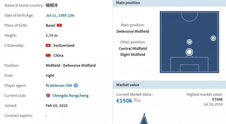 楊明洋,1995年7月11日出生于瑞士巴塞爾,2021年回歸中國籍,司職防守型中場。2024賽季,楊明洋代表南通支云出戰(zhàn)24場,貢獻了2次助攻。