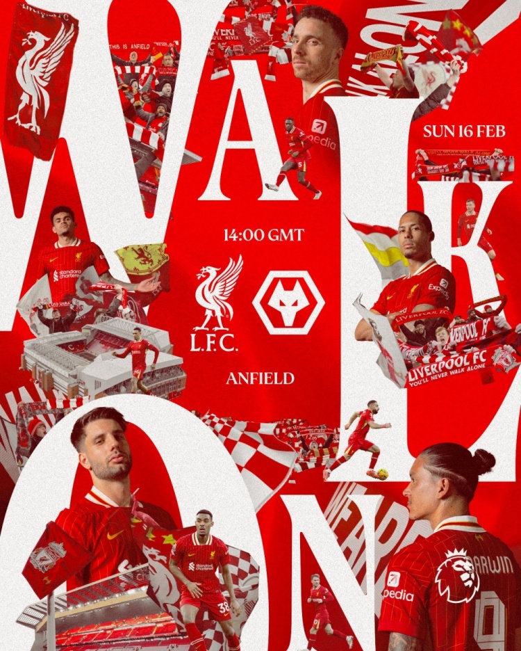 利物浦官方社媒發(fā)布了為此役制作的海報(bào),范迪克、努涅斯、迪亞斯、赫拉芬貝赫、若塔、索博斯洛伊等球員出鏡。