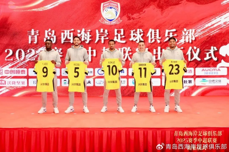 2月16日訊 據(jù)青島西海岸俱樂(lè)部官博報(bào)道,今天下午,青島西海岸足球俱樂(lè)部舉行了2025賽季中超聯(lián)賽出征儀式,包括里切利、阿齊茲、戴維森在內(nèi)的新賽季球隊(duì)5名外援集體登場(chǎng)亮相。