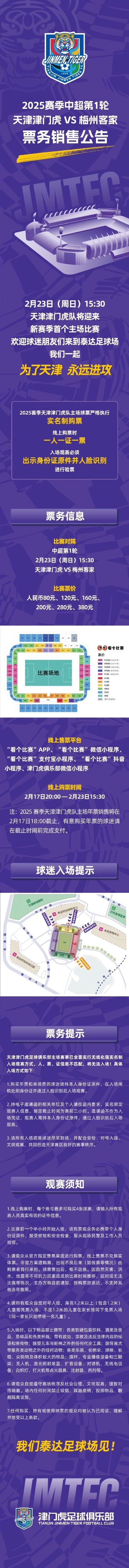 2025中超聯(lián)賽第1輪天津津門虎VS梅州客家票務(wù)銷售公告