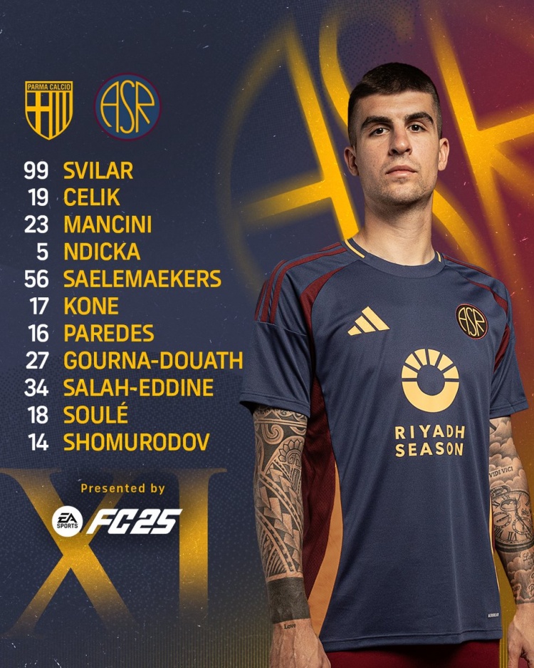 羅馬客戰(zhàn)帕爾馬首發(fā):蘇萊領(lǐng)銜,新援杜亞斯、薩拉赫-埃丁出戰(zhàn)