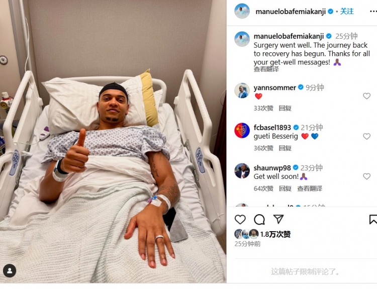 阿坎吉:“手術(shù)進(jìn)行得很順利,康復(fù)之旅已經(jīng)開(kāi)始,感謝你們所有祝福的信息!”