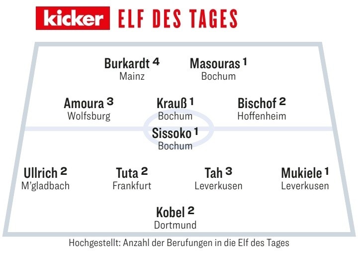 2月17日訊 德甲第22輪聯(lián)賽已經(jīng)完賽,《踢球者》也評(píng)出了本輪最佳陣容,波鴻3人在列。