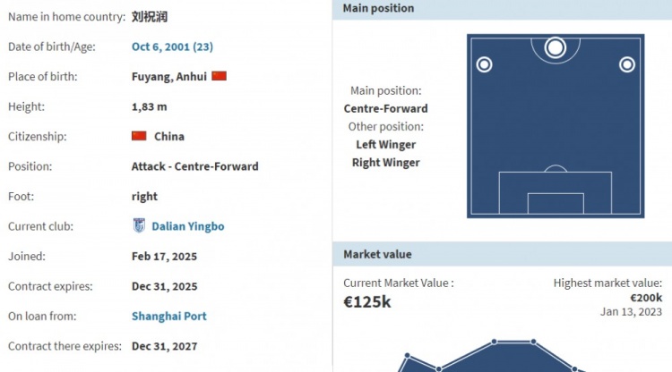 目前,劉祝潤(rùn)的身價(jià)為12.5萬歐元。