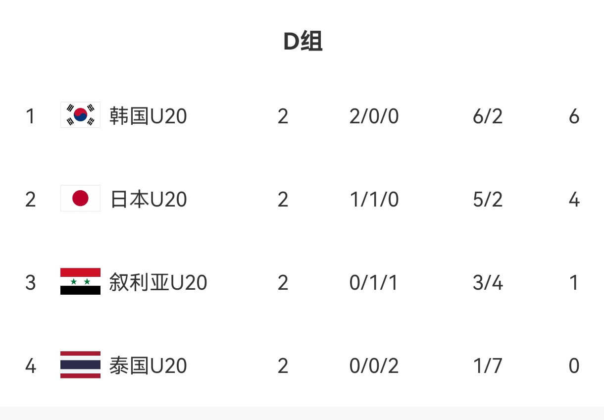 U20亞洲杯D組出線形勢:日本末輪不敗即晉級,敘利亞需大勝泰國