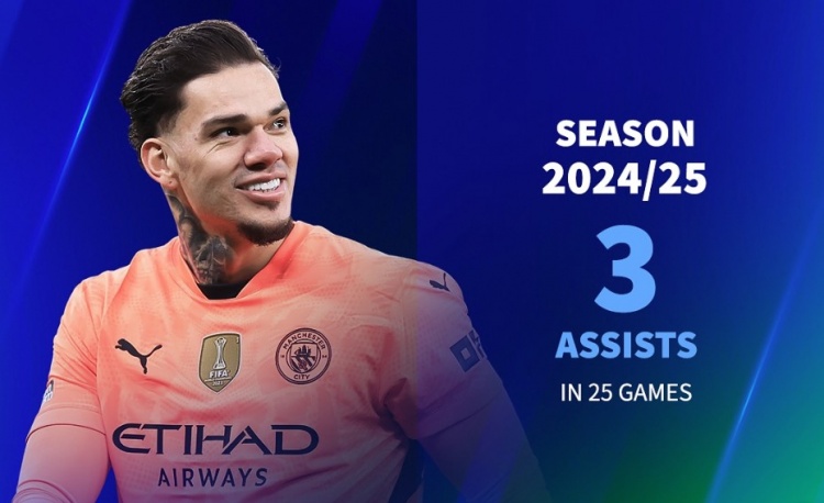 2月18日訊 曼城在本輪英超4-0完勝紐卡,埃德森助攻馬爾穆什首開紀(jì)錄,這也是前者本賽季25場比賽的第3次助攻。