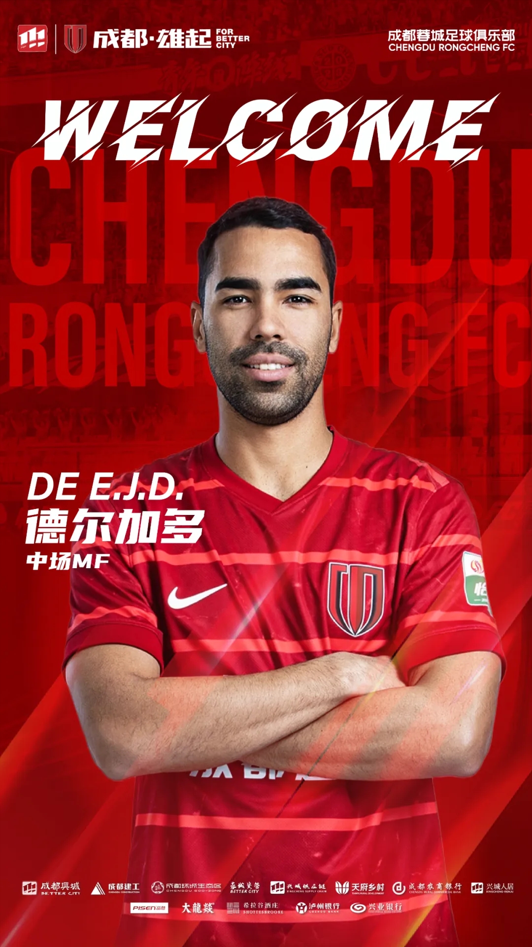 歡迎德爾加多來到成都,加入成都蓉城的大家庭。你的到來,將幫助蓉城在新賽季中取得更優(yōu)異的成績!
