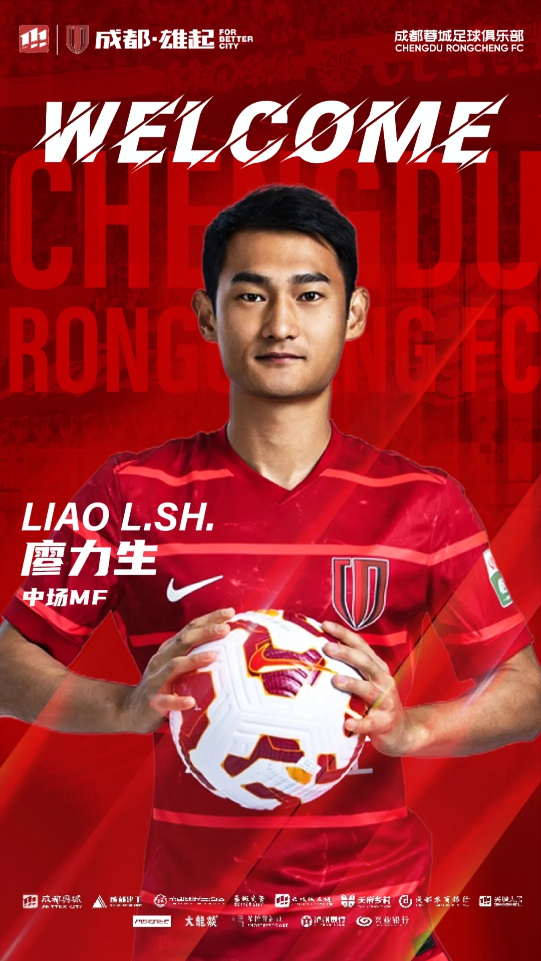 歡迎廖力生來到成都,加入成都蓉城的大家庭。你的到來,將幫助蓉城在新賽季中取得更優(yōu)異的成績!