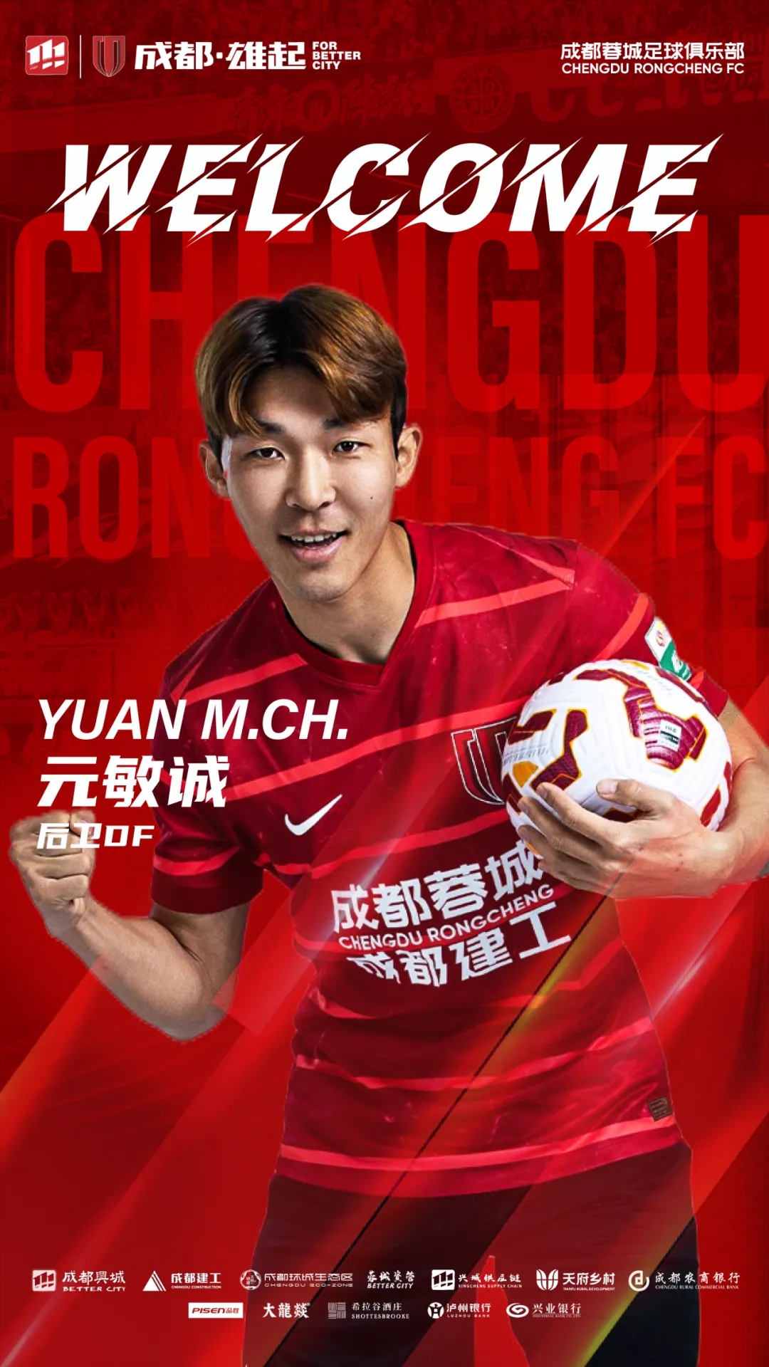 歡迎元敏誠來到成都,加入成都蓉城的大家庭,你的到來將為隊伍注入新的活力與力量!