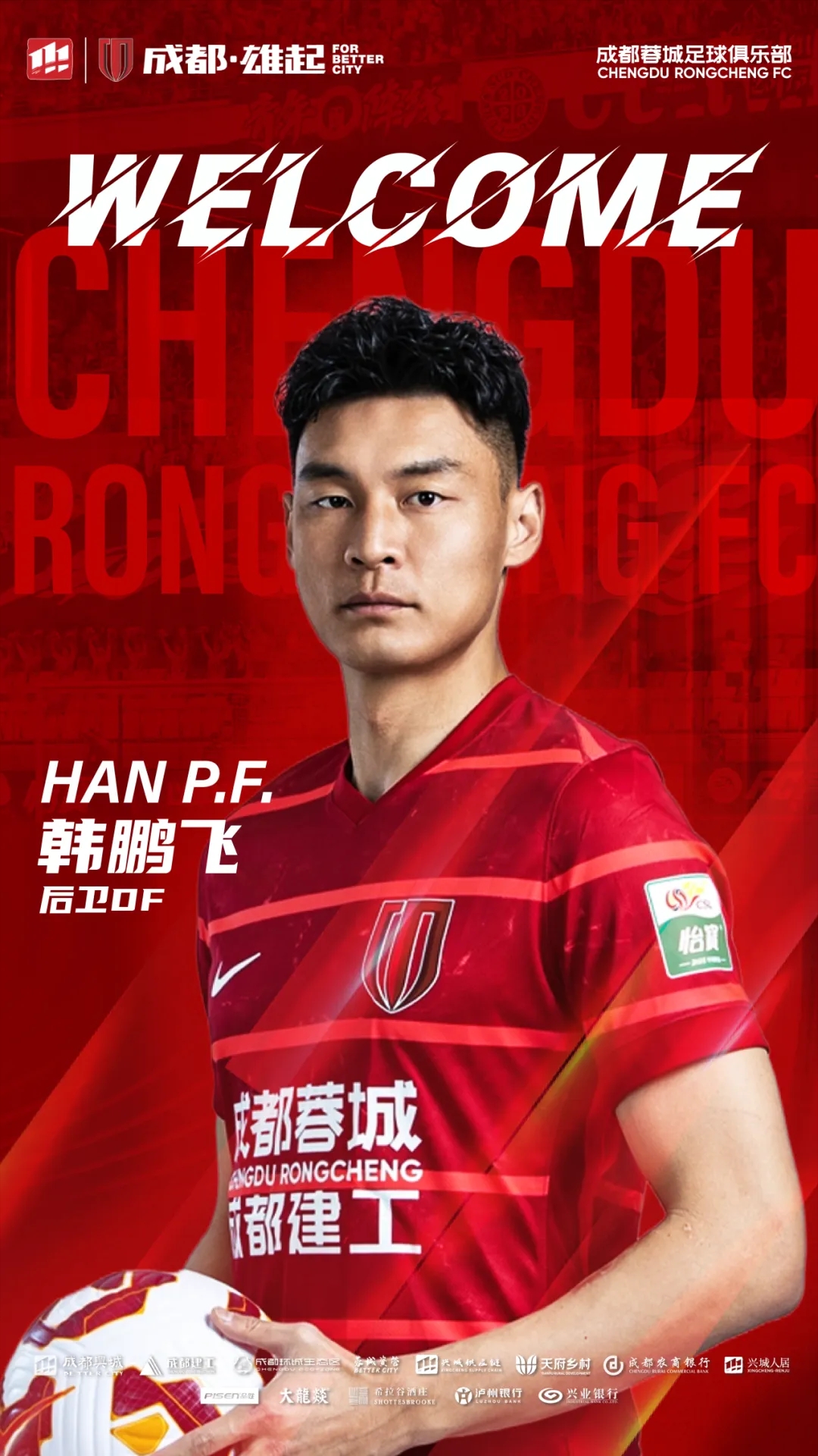 歡迎韓鵬飛來到成都,加入成都蓉城的大家庭,你的到來將為隊伍注入新的活力與力量!