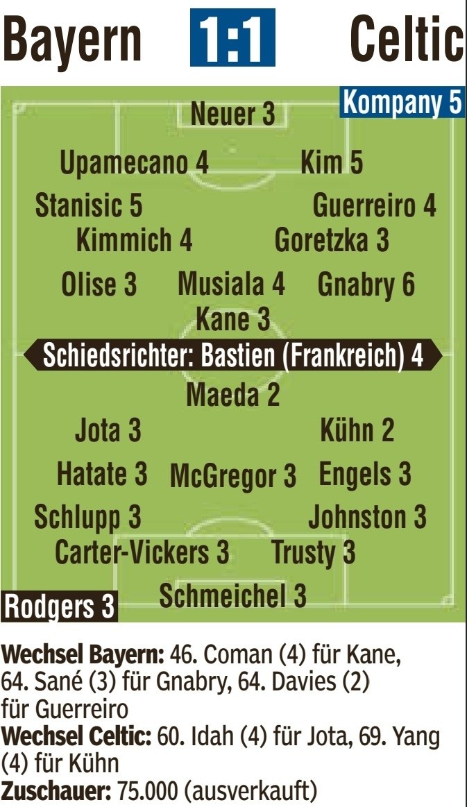 拜仁vs凱爾特人圖片報(bào)評分:戴維斯2分最高,格納布里6分最低