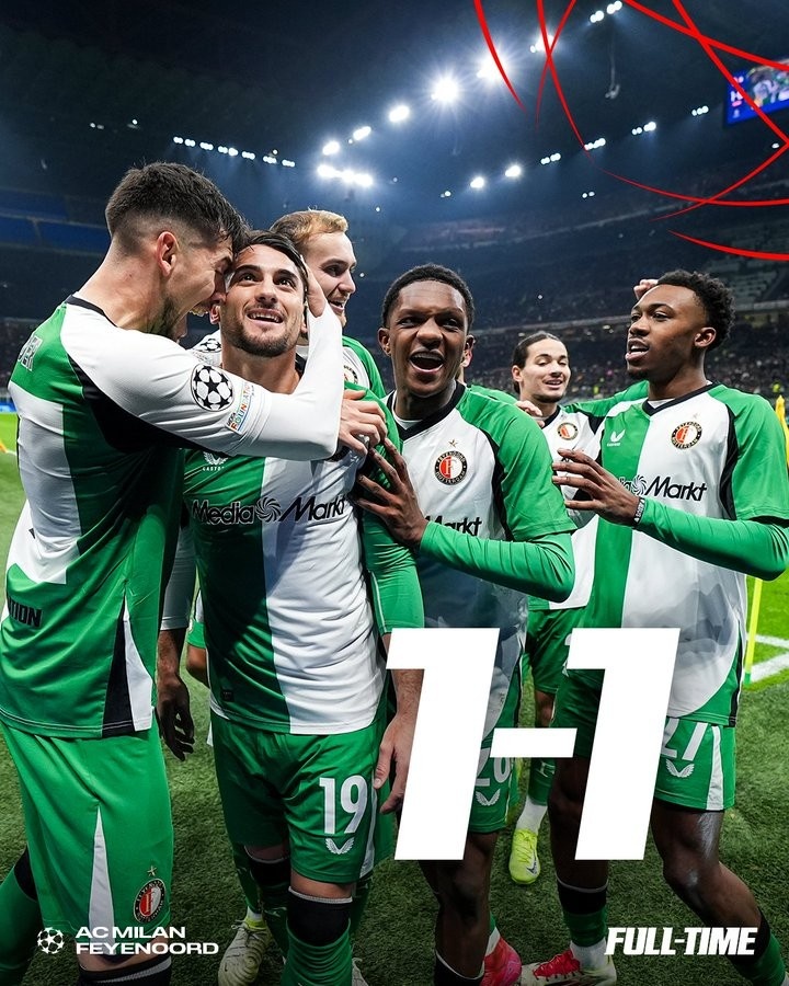 數(shù)據(jù)統(tǒng)計(jì)顯示,費(fèi)耶諾德歷史兩次在歐冠遭遇米蘭均成功晉級(jí)。