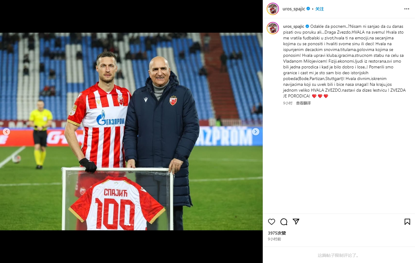 斯帕吉奇在社媒告別寫道: