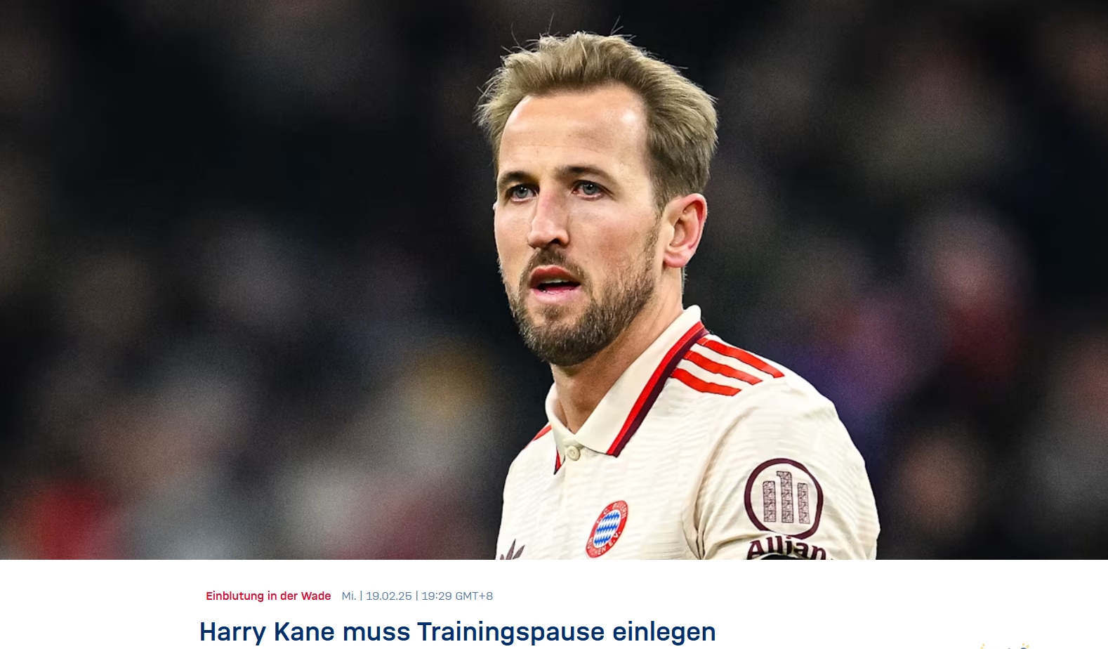 02月19日訊 拜仁官方消息,凱恩在歐冠比賽中因受到撞擊小腿血腫,將傷缺數(shù)日。