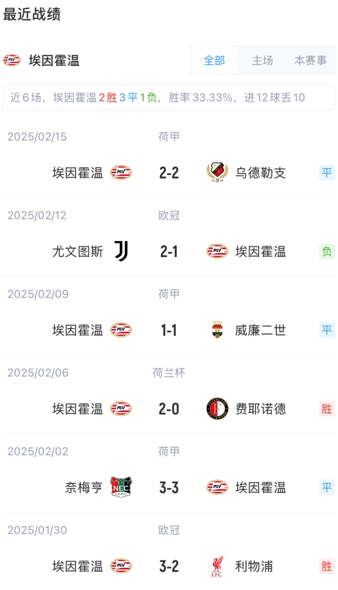 2月20日訊 歐冠淘汰賽附加賽次回合,埃因霍溫主場迎戰(zhàn)尤文比賽即將打響,賽前首發(fā)出爐。首回合對陣,尤文2-1埃因霍溫。