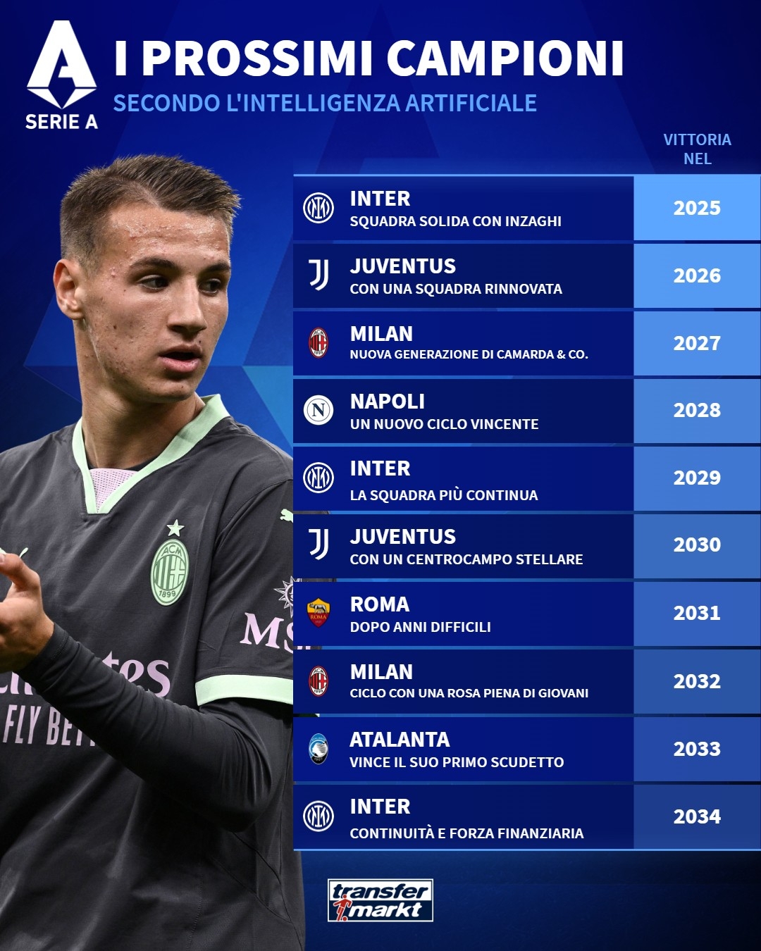 ChatGPT預(yù)測(cè)未來(lái)20年意甲冠軍: