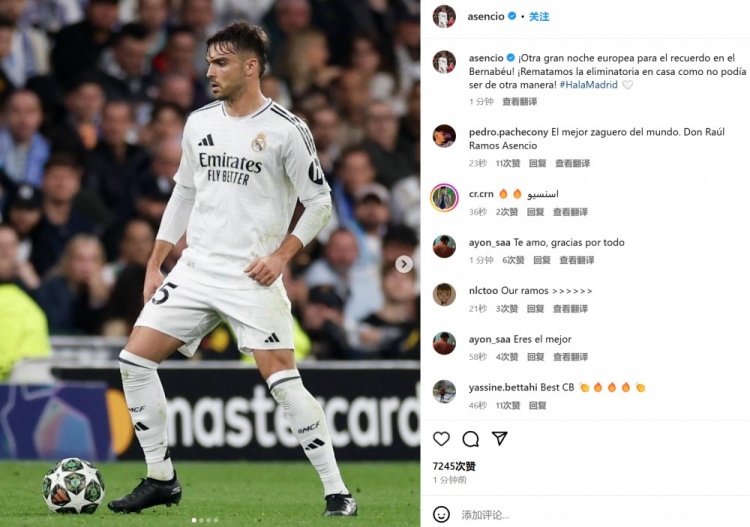 他也在賽后通過(guò)社媒曬出自己的比賽照,并配文:“在伯納烏球場(chǎng)的又一個(gè)值得銘記的歐冠之夜!我們?cè)谥鲌?chǎng)成功從附加賽突圍,除此之外也別無(wú)其他可能!馬德里前進(jìn)!”