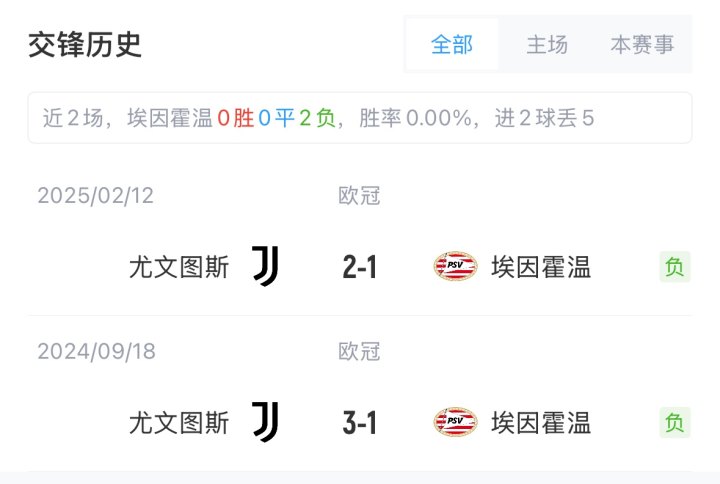 02月20日訊 在剛剛結(jié)束的歐冠淘汰賽附加賽中,尤文兩回合總比分3-4不敵埃因霍溫慘遭淘汰,巧合的是兩隊(duì)在之前的聯(lián)賽階段就有過交手,當(dāng)時(shí)尤文曾3-1輕取對(duì)手,附加賽的首回合尤文也以2-1取勝搶占先機(jī),但卻在最關(guān)鍵的第二回合敗北。
