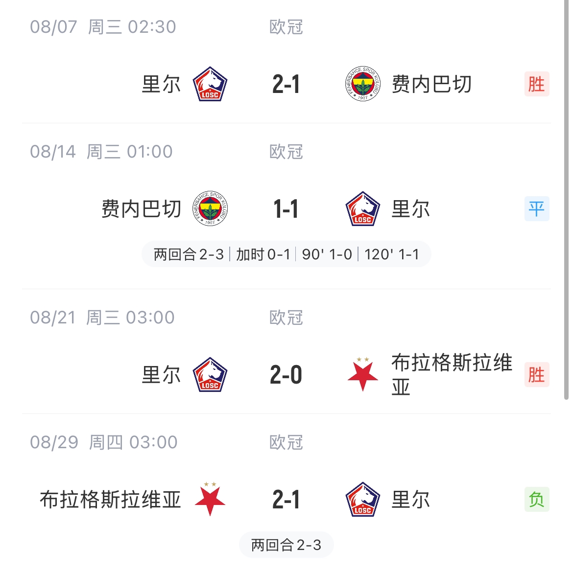 里爾本賽季歐冠從資格賽打起,先后淘汰費內(nèi)巴切和布拉格斯拉維亞晉級聯(lián)賽階段。