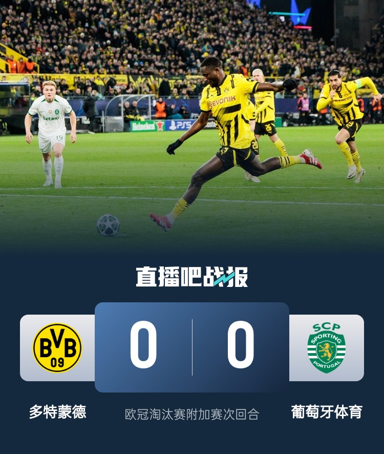 歐冠淘汰賽附加賽次回合,多特0-0葡萄牙體育,總比分3-0晉級16強(qiáng)。上半場,多特占據(jù)場上主動多次威脅球門,可惜未能把握住進(jìn)球機(jī)會;下半場,阿德耶米造點(diǎn),吉拉西主罰點(diǎn)球被撲,雷納單刀中柱,埃姆雷-詹進(jìn)球被吹。