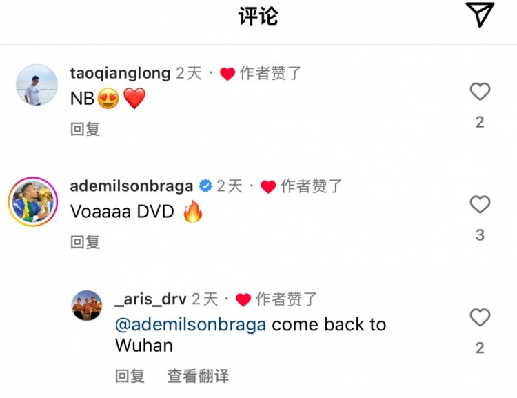 曾經(jīng)在武漢三鎮(zhèn)并肩作戰(zhàn)的陶強(qiáng)龍、埃德米爾森,都留言為戴維森送上了祝福。