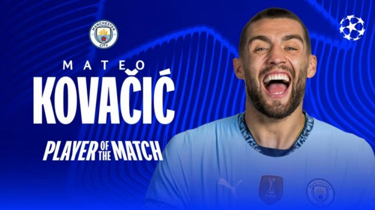1月30日訊 在歐冠聯(lián)賽階段收官戰(zhàn)中,曼城3-1擊敗布魯日。賽后,歐冠官方宣布,科瓦西奇當(dāng)選全場(chǎng)最佳球員。