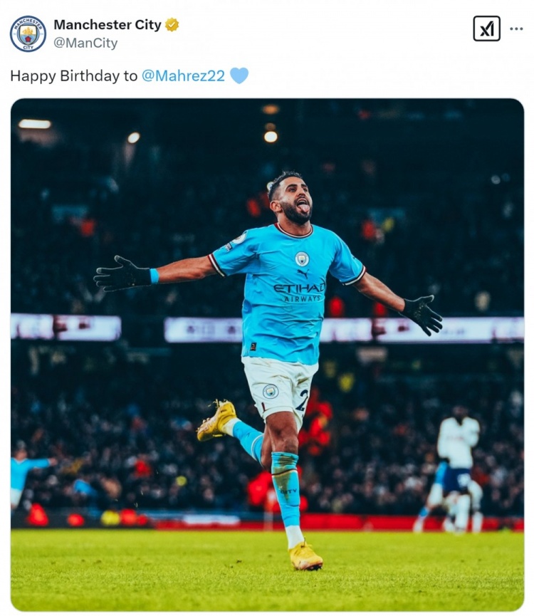 2月21日訊 今天是阿爾及利亞邊鋒馬赫雷斯的34歲生日,老東家曼城為他送上祝福。