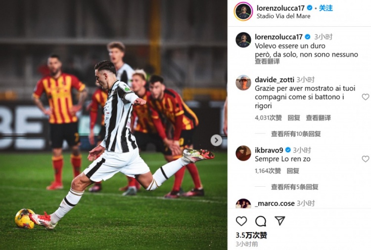 2月23日訊 近日,烏迪內斯前鋒盧卡在社媒發(fā)文做出道歉,因為他在烏迪內斯對陣萊切的比賽中拒絕將點球球交給隊內點球手托萬來主罰。