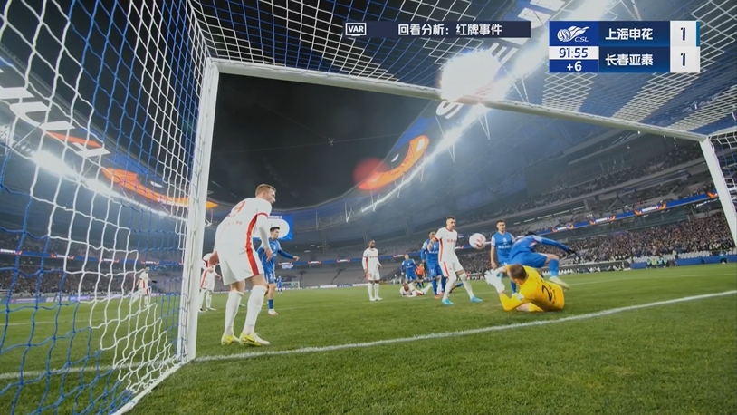 上海申花主場交鋒長春亞泰的新賽季中超揭幕戰(zhàn),傷停補時階段,申花隊員朱辰杰的頭球攻門導(dǎo)致吳亞珂撲救脫手,蔣圣龍上搶時略顯魯莽,一腳結(jié)結(jié)實實踩在吳亞珂小腿上。這個疑似紅牌的動作,引發(fā)視頻助理裁判VAR介入,但當(dāng)值主裁判李海新在觀看回放后,否決了VAR的紅牌判罰建議,只是給了蔣圣龍一張黃牌。
