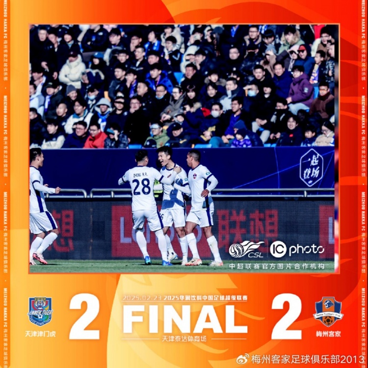 北京時(shí)間2月23日15:30,2025華潤(rùn)飲料中國(guó)足球超級(jí)聯(lián)賽第1輪比賽,梅州客家做客天津泰達(dá)體育場(chǎng)對(duì)陣天津津門虎。