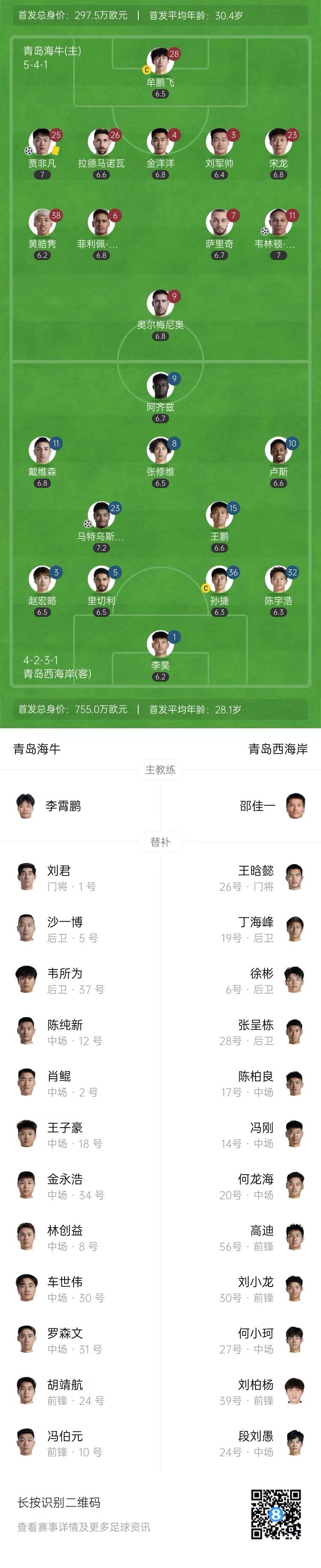 半場(chǎng)-青島海牛暫2-1青島西海岸 席爾瓦世界波馬特烏斯?fàn)幾h球