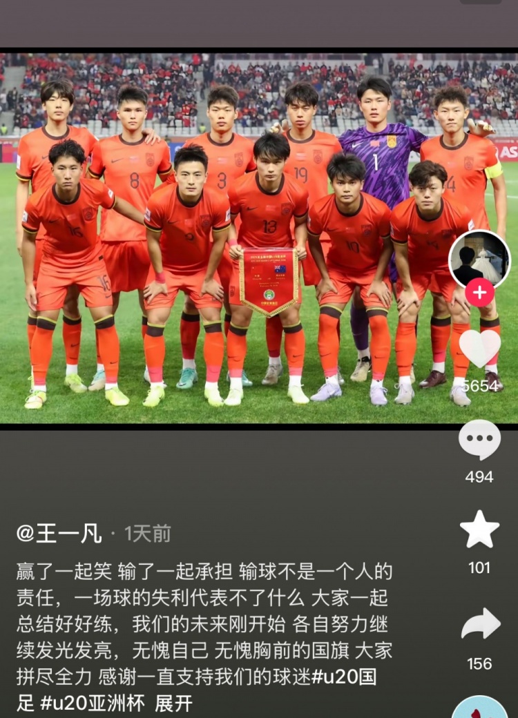 2月24日訊 在國青0-1不敵沙特,遺憾無緣世青賽后,國青球員王一凡更新社媒,表達(dá)了自己參加這屆U20亞洲杯的感受。