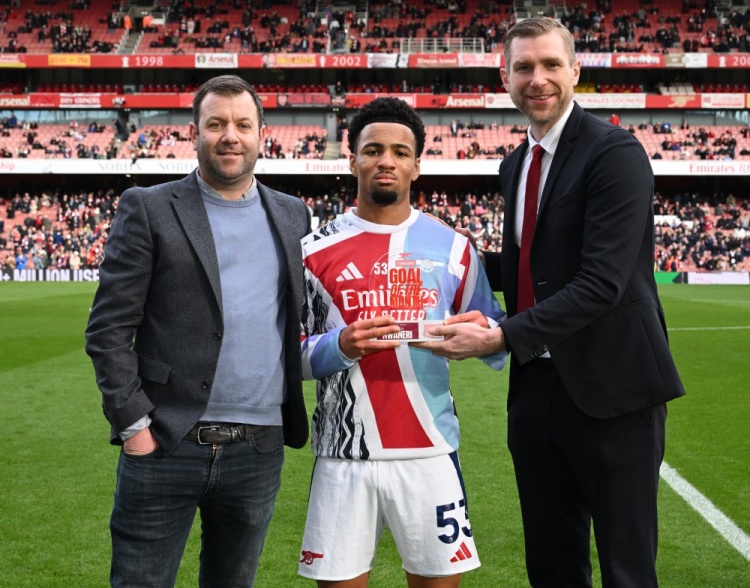 2月24日訊 阿森納官推曬照,恩瓦內里領取了隊內一月最佳進球獎。