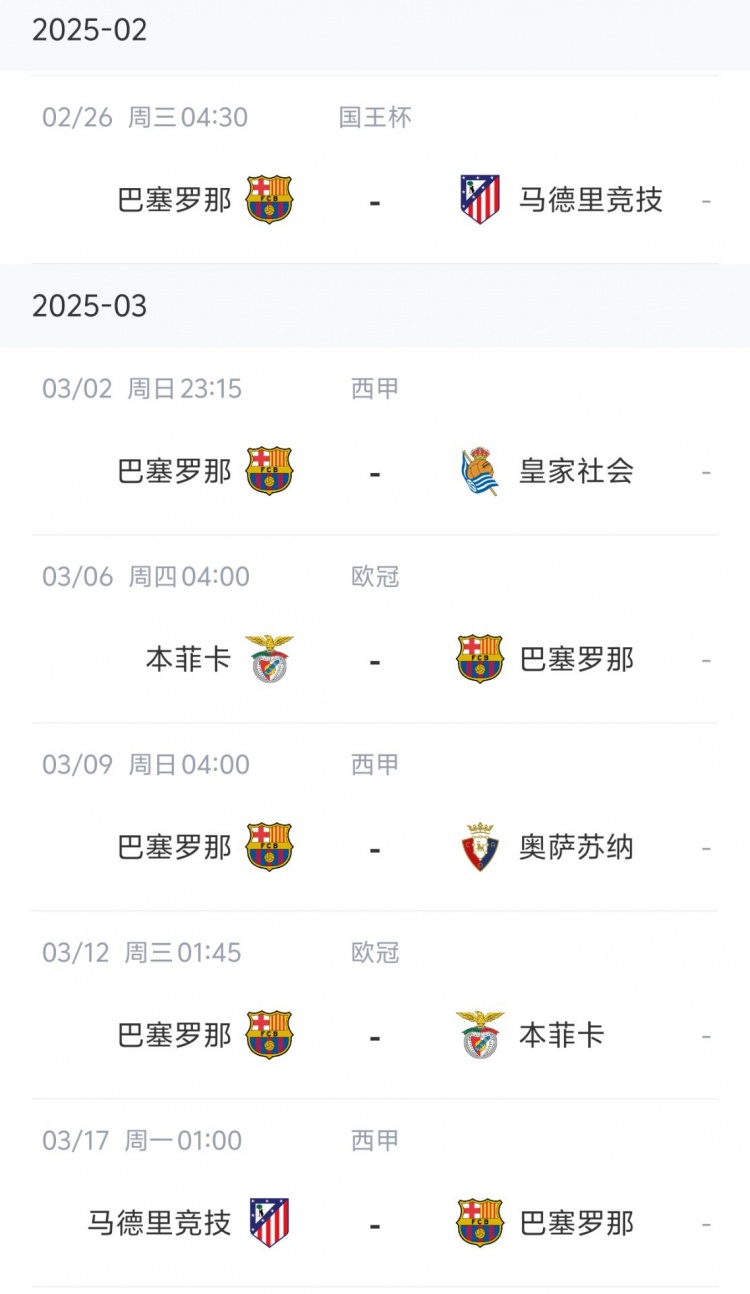 2月24日訊 未來三周,巴薩、皇馬和馬競將迎來一系列關(guān)鍵賽事?!睹咳阵w育報(bào)》報(bào)道,巴薩的賽程相對較為有利,六場比賽中將有四場主場作戰(zhàn)。