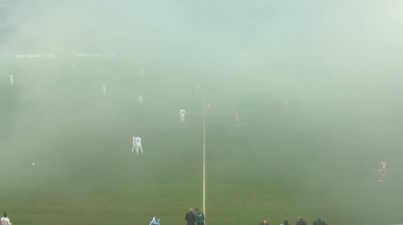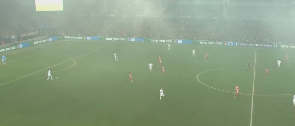 推遲開(kāi)球,皇馬客戰(zhàn)布雷斯特有球迷燃放煙火,球場(chǎng)煙霧彌漫