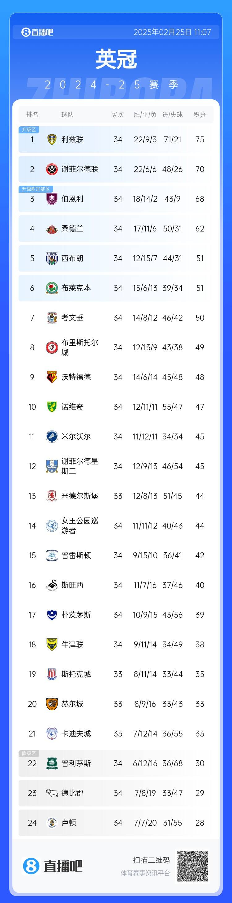 02月25日訊 英冠第34輪天王山之戰(zhàn),利茲聯(lián)客場(chǎng)3-1逆轉(zhuǎn)謝菲爾德聯(lián),全取三分之后利茲已5分領(lǐng)跑英冠,是升超的大熱門。