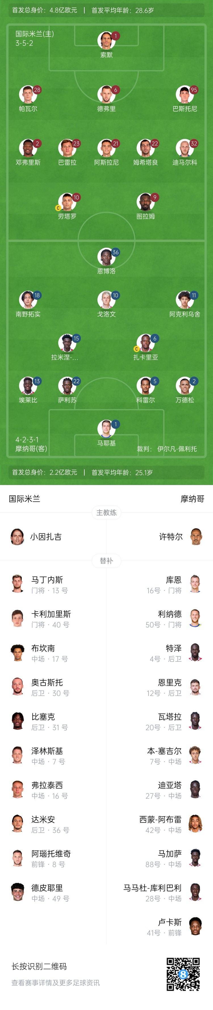 國米vs摩納哥首發(fā):阿斯拉尼、姆希塔良先發(fā) 勞塔羅搭檔圖拉姆