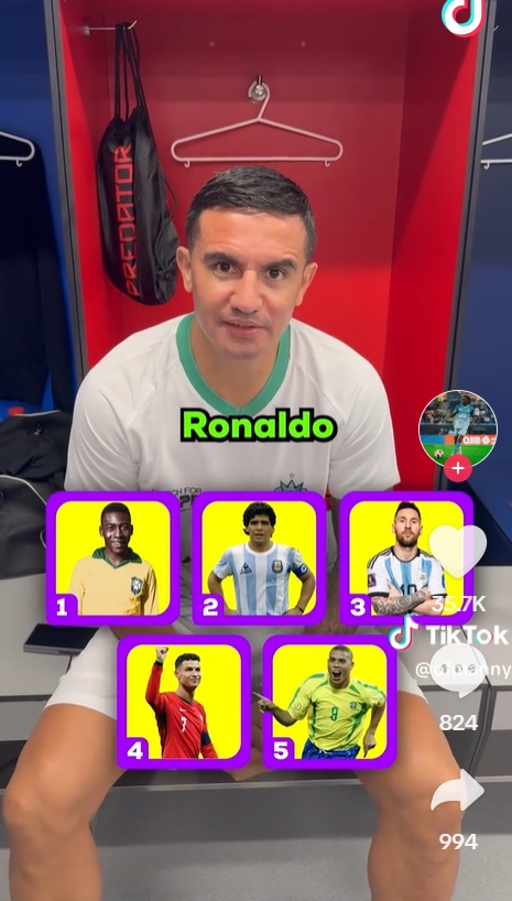 蒂姆-卡希爾選歷史最佳五人:貝利、老馬、梅西、C羅、羅納爾多